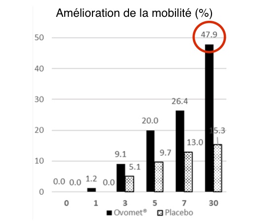 Les colonnes noires représentent le groupe qui a bénéficié du nouvel actif « Ovomet® »